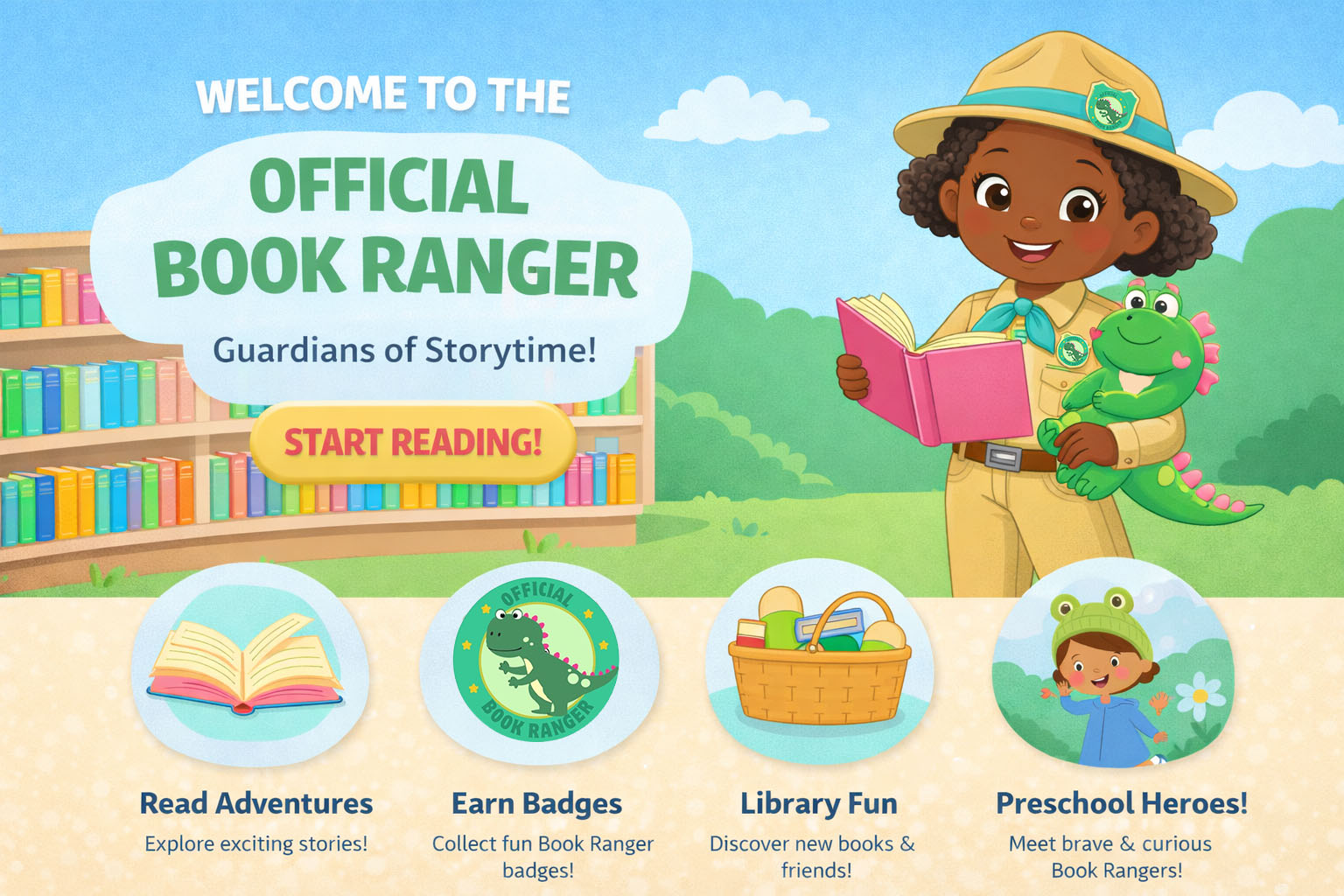 As a Book Ranger, you’ll explore magical stories, uncover hidden literary treasures, and embark on exciting read-aloud missions across libraries everywhere. With a book in hand and a sense of adventure, every child can become a fearless explorer of words, imagination, and knowledge.